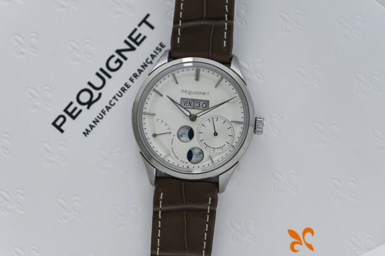 The moon phase is an indicator that keeps track of the phases of the moon. A regular rotation of the moon is once around the earth every 29 days, 12 hours, 44 minutes and 2.9 seconds. Once set, the moon phase indicator accurately displays the phase of the moon. Most moon phase indications are precise set to a rotation of 29.5 days, while some are more precise.