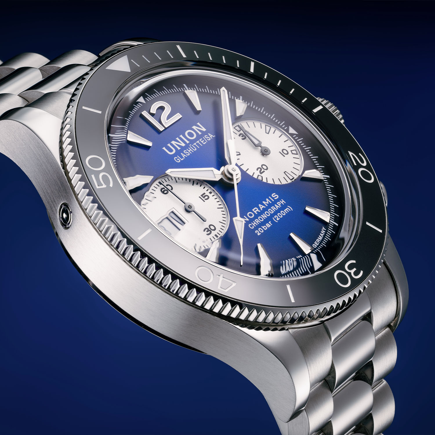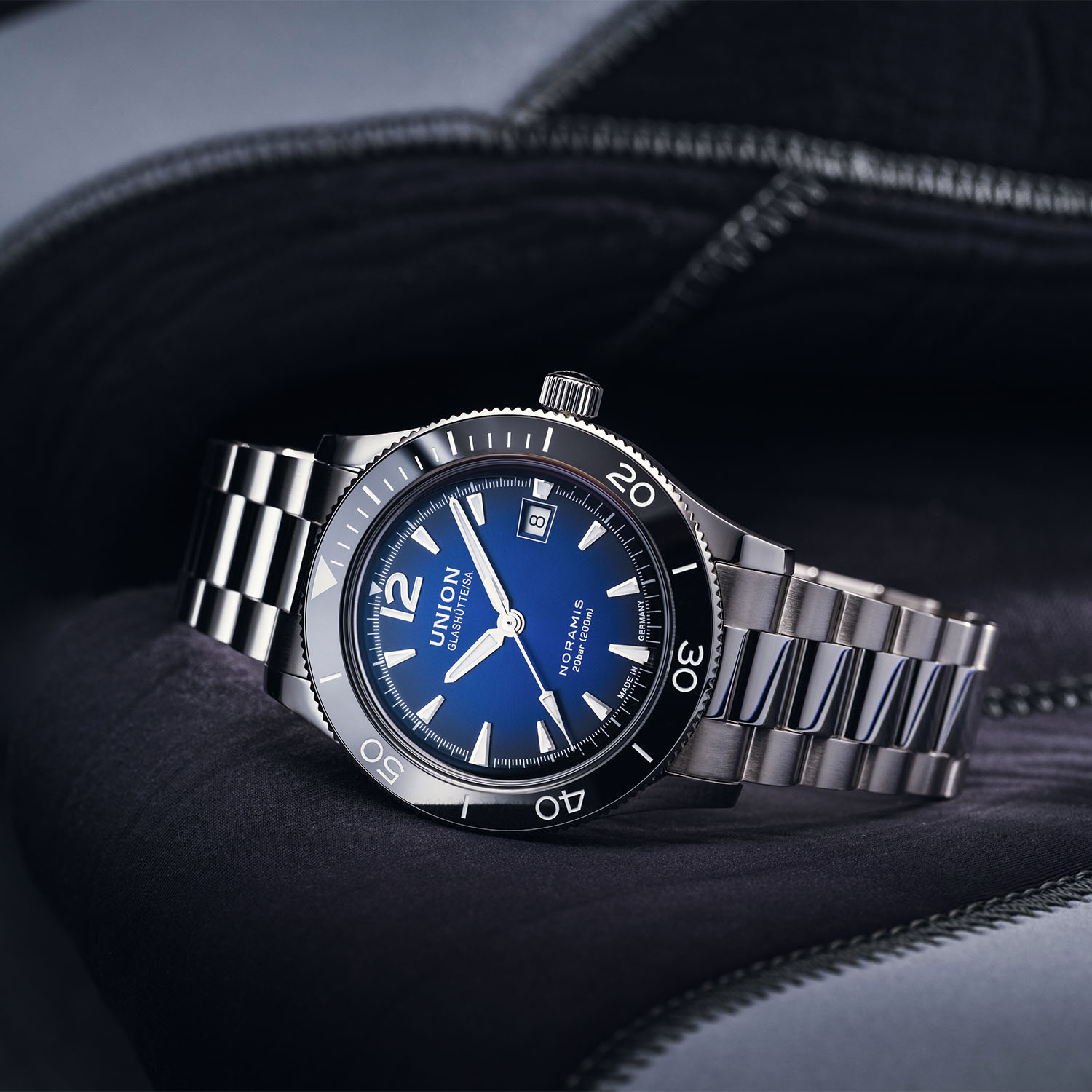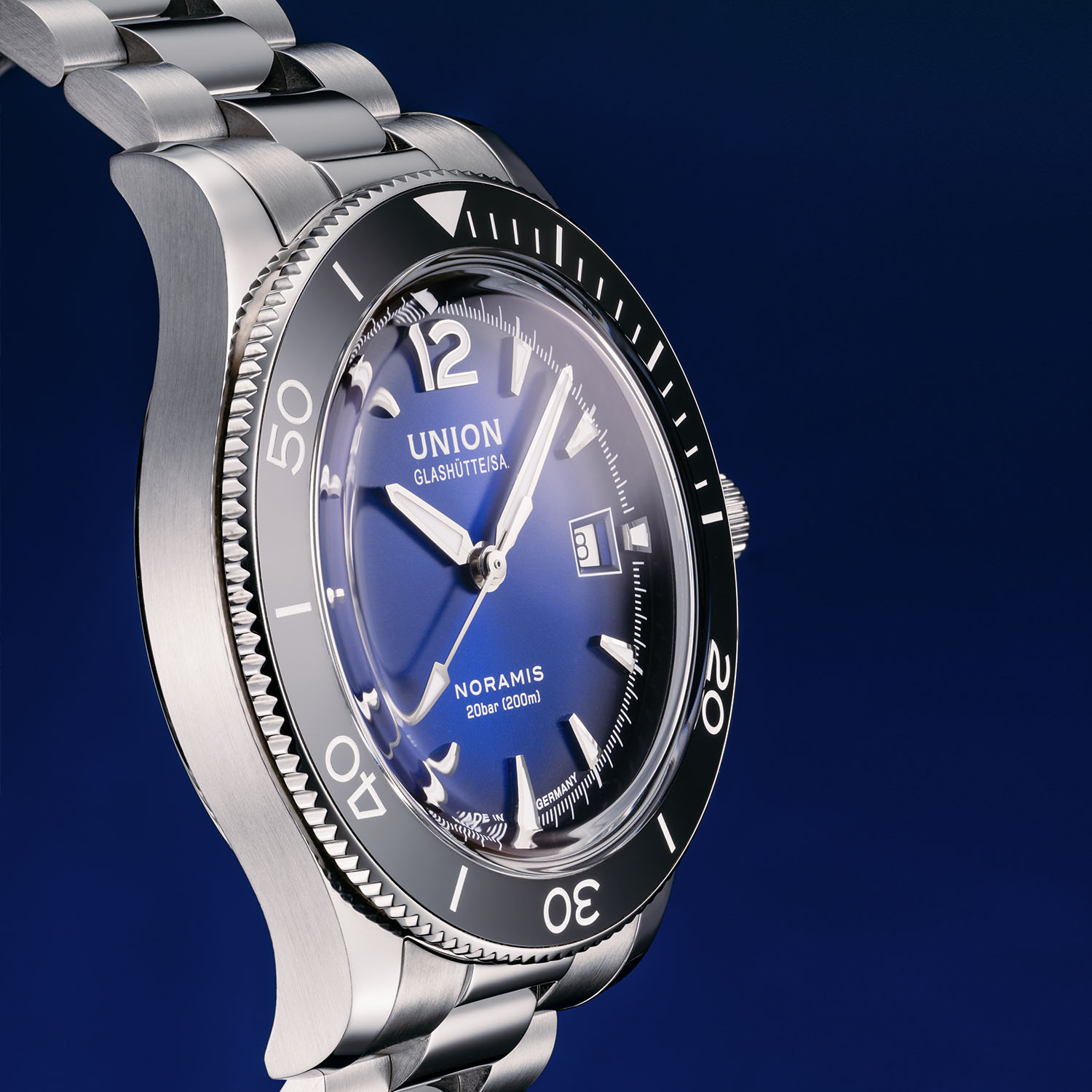Union Glashütte, now part of Swatch Group, marks its birth in 1893 when Johannes Dürrstein founded the Uhrenfabrik Union in the heart of Germany’s watchmaking region. Balancing vintage and modern elements with appealing designs and a reasonable price-to-quality ratio, nowadays the brand receives proper attention with releases like last year´s Noramis Chronograph Sport with its gradient dials in blue, anthracite and turquoise, blending retro flair with modern sportiness and solid craftsmanship. This year, Union Glashütte refreshes the Noramis Chronograph Sport and Noramis Date Sport variants. Both models feature the familiar gradient blue dial, now paired with a sleek stainless steel bracelet for a new, versatile look.