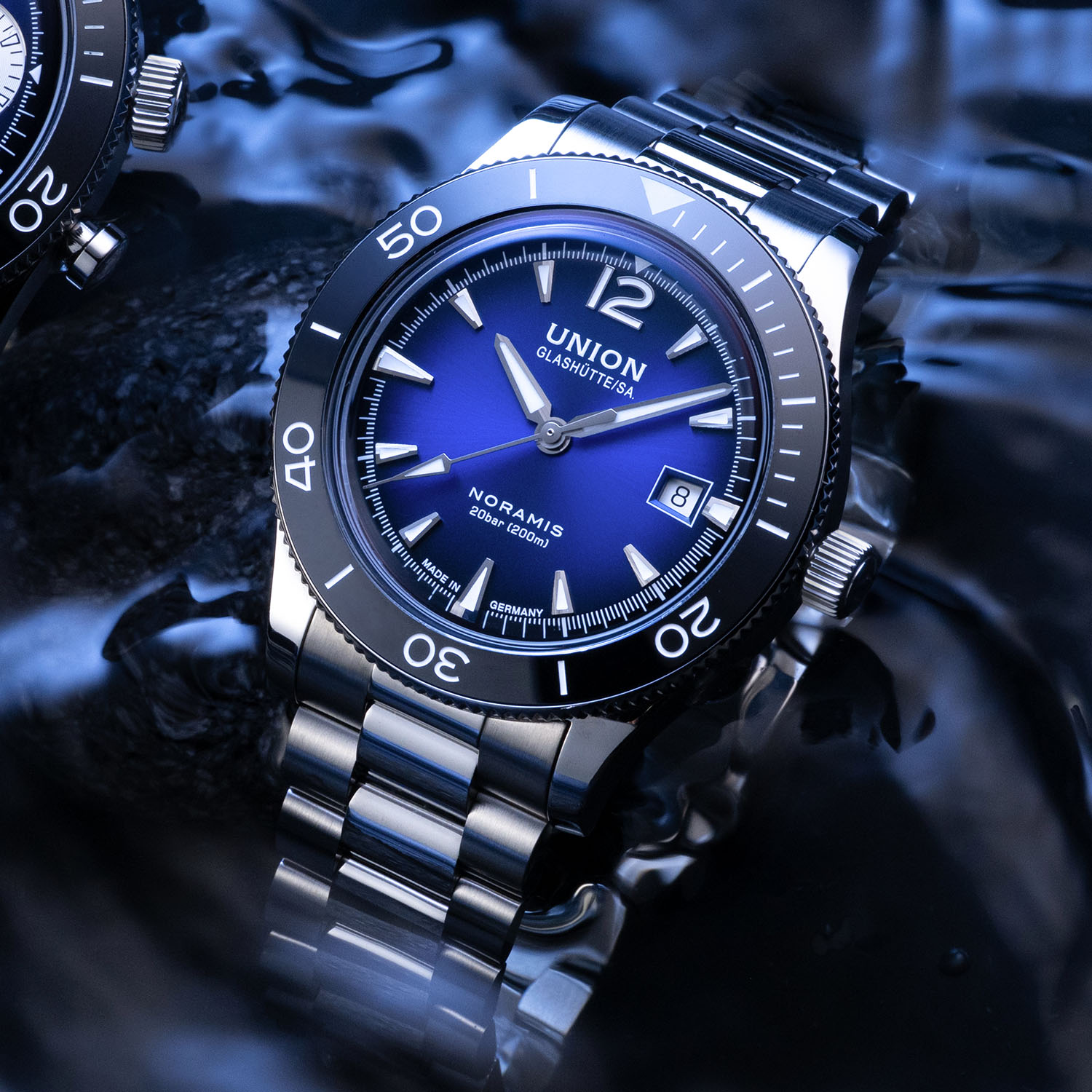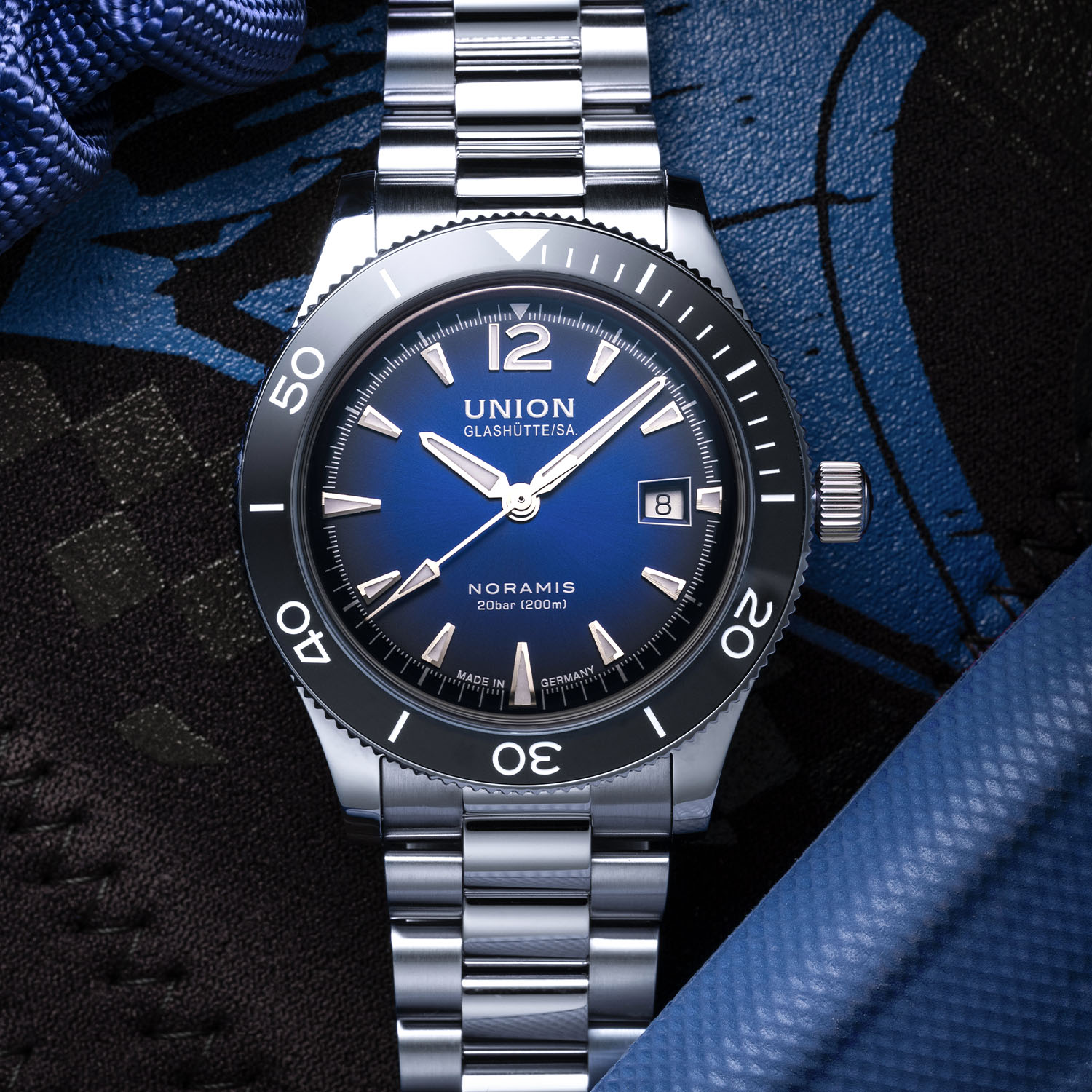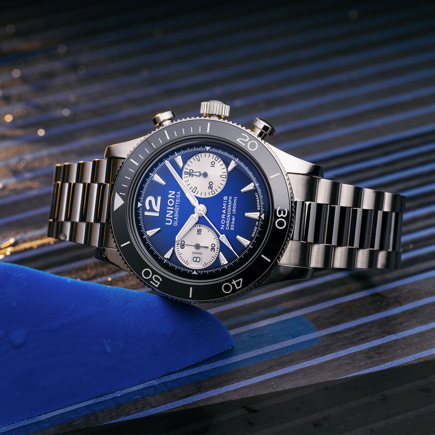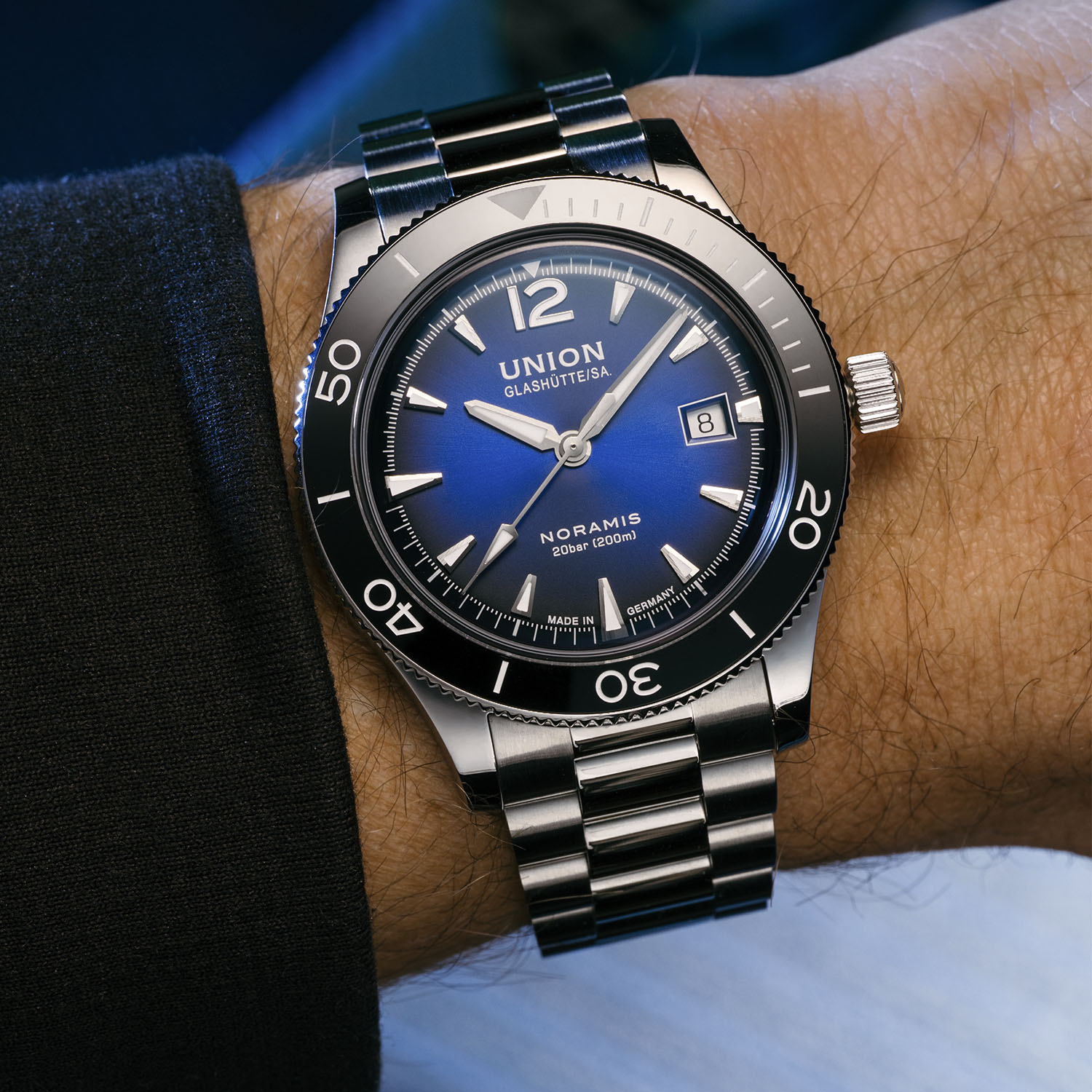 Union Glashütte, now part of Swatch Group, marks its birth in 1893 when Johannes Dürrstein founded the Uhrenfabrik Union in the heart of Germany’s watchmaking region. Balancing vintage and modern elements with appealing designs and a reasonable price-to-quality ratio, nowadays the brand receives proper attention with releases like last year´s Noramis Chronograph Sport with its gradient dials in blue, anthracite and turquoise, blending retro flair with modern sportiness and solid craftsmanship. This year, Union Glashütte refreshes the Noramis Chronograph Sport and Noramis Date Sport variants. Both models feature the familiar gradient blue dial, now paired with a sleek stainless steel bracelet for a new, versatile look.