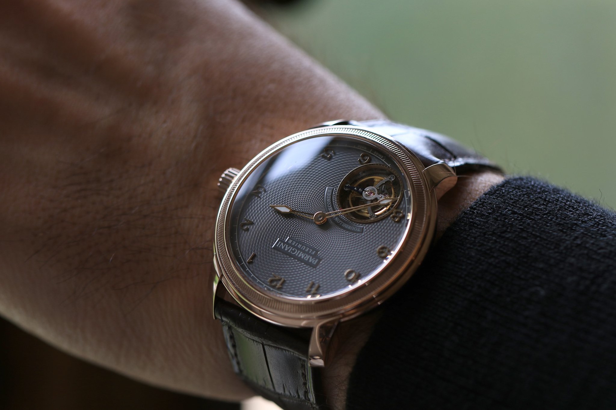 Over the past couple of years, Parmigiani Fleurier has offered exquisite slate-coloured engine-turned dial versions of some of its Toric models. These watches stand out with their warm colour and no-compromise craftsmanship. Among the latest additions to these series is the Toric Slate Tourbillon, a 25-piece limited edition with a sleek design. The 42.8mm gold case features a knurled bezel and houses the calibre PF517, an extra-thin automatic movement with micro-rotor. It is regulated by a one-minute flying tourbillon originally positioned at 7 o’clock.