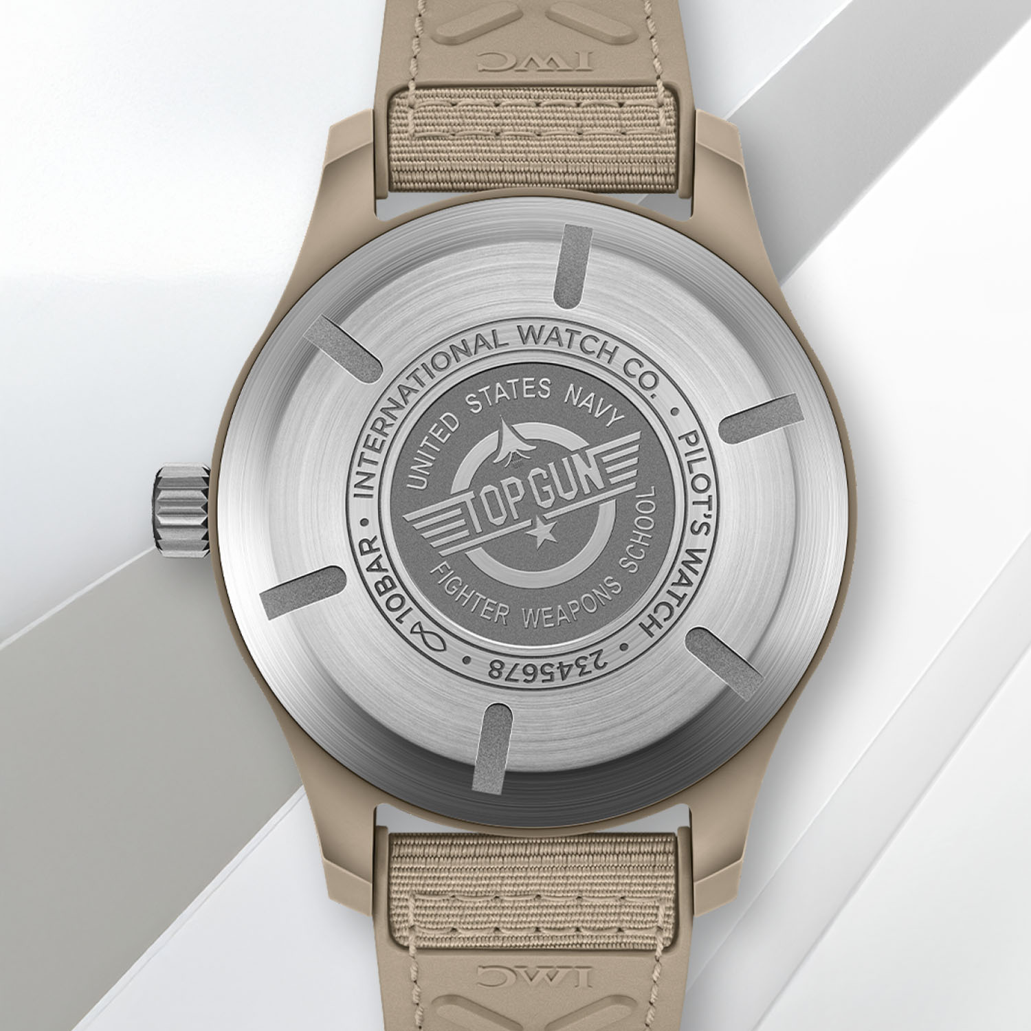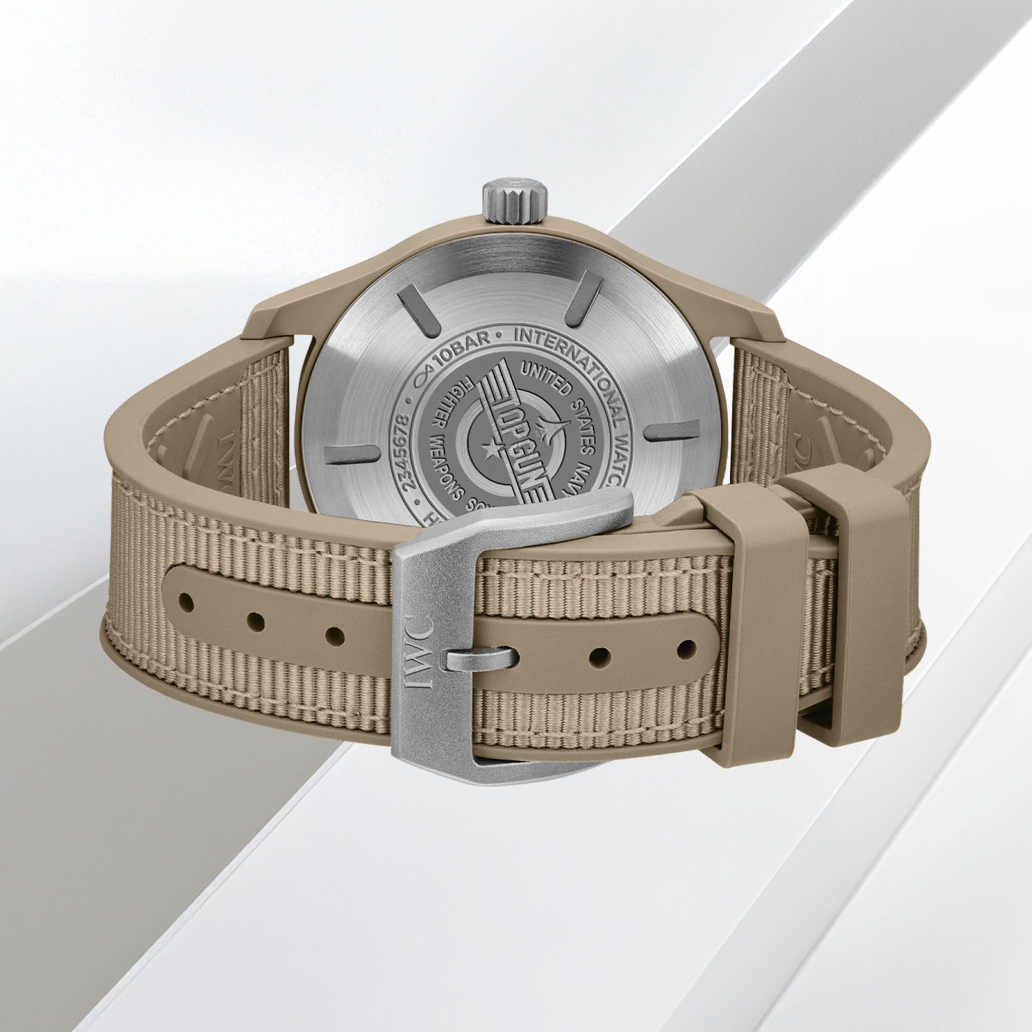 The watch is worn on a beige rubber strap with a matching textile inlay and a titanium pin buckle. The Pilot’s Watch Automatic 41 TOP GUN Mojave Desert IW328106 is available now, the price is EUR 9,100. For more details, visit iwc.com.